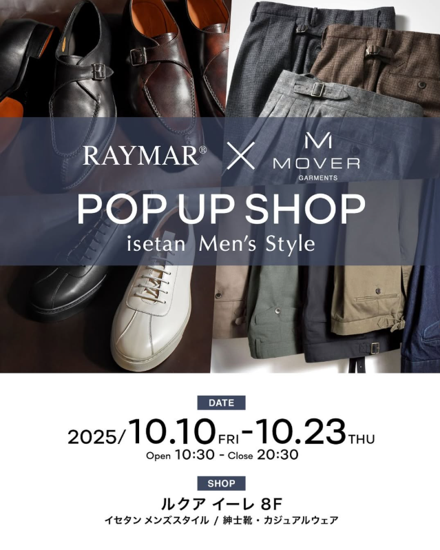 【POP UP 出店のお知らせ】RAYMAR × MOVER GARMENTS(大阪・ルクアイーレ/イセタンメンズスタイル)